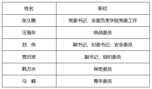 学院党委委员工作分工如下: