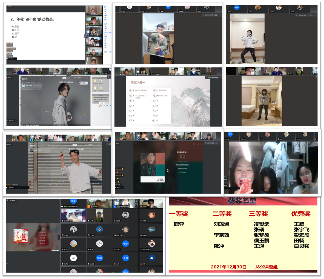 蒋玮老师和建工学院肖晶晶老师于2022年元旦前夕组织研究生进行了线上疫情防控期间文艺表演暨元旦晚会,三十余名同学踊跃报名参与。