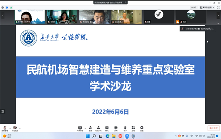 副院长、民航重点实验室副主任张久鹏教授主持学术沙龙,民航西北设计院、咸阳机场、福州机场、翔安机场、邯郸机场等管理和技术骨干以及机场工程系全体教师和在校研究生80余人参加了学术沙龙。
