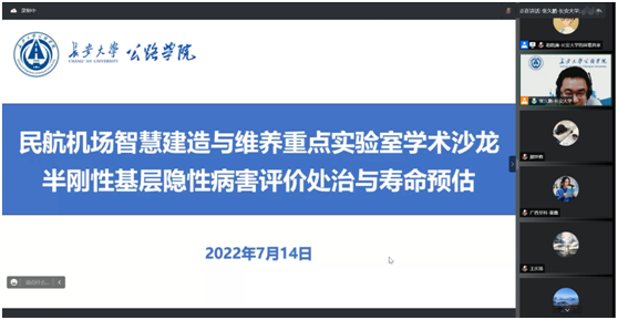 2022年7月14日下午,民航机场智能建造与维养重点实验室成功举办“半刚性基层隐性病害评价处治与寿命预估”线上学术沙龙。西北民航机场建设集团杨凯、圭目机器人有限公司钟新然、广西交通科学研究院王浩、色情游戏