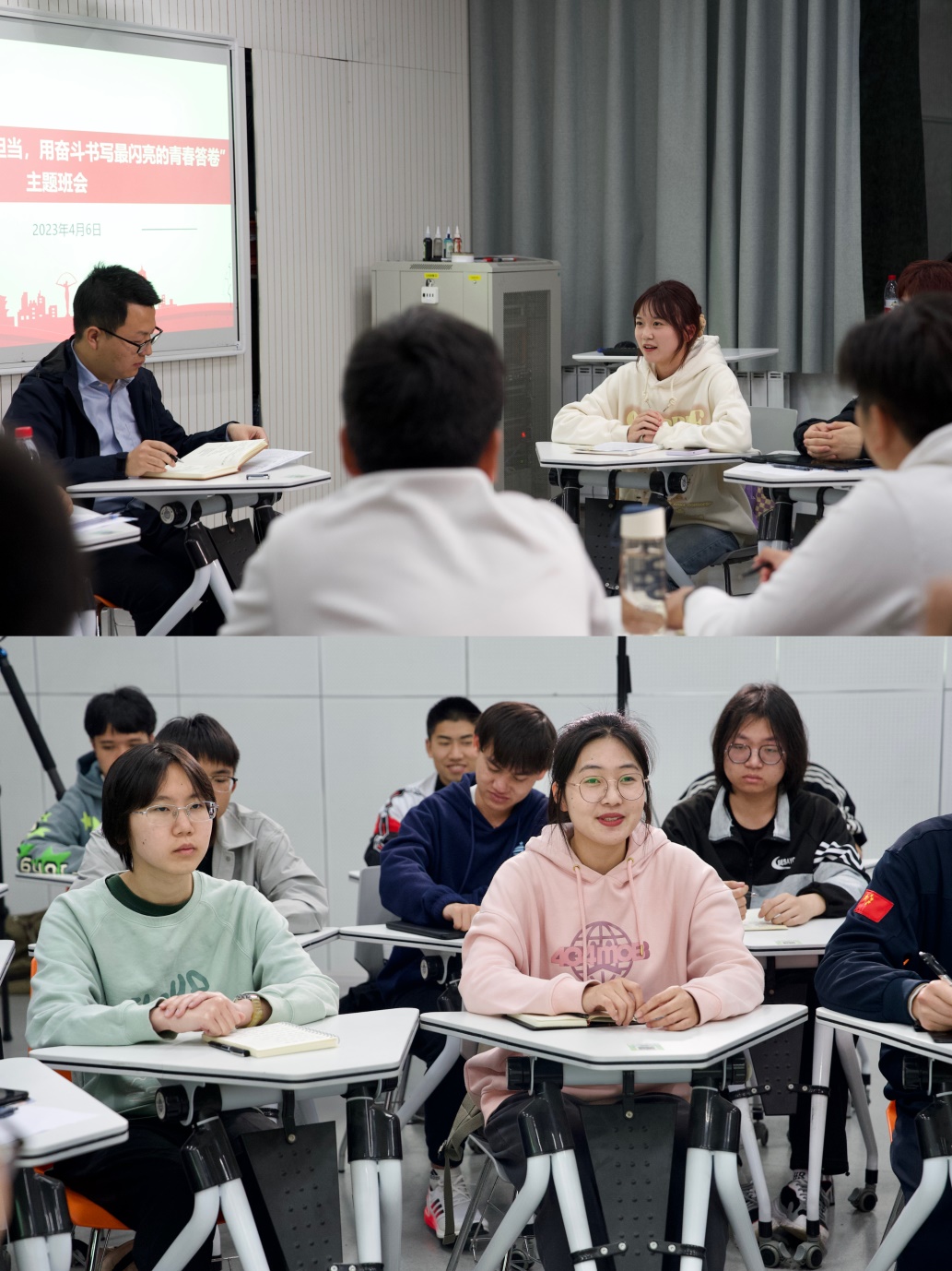 2020级道路桥梁与渡河工程(国际班)4班在修远3202教室召开“不负时代、挺膺担当,用奋斗书写最闪亮的青春答卷”主题班会。班主任陈志坚讲授“开学第一课”,并与班级同学进行互动交流。辅导员王达、孔令超和班级全体同学参加班会。
