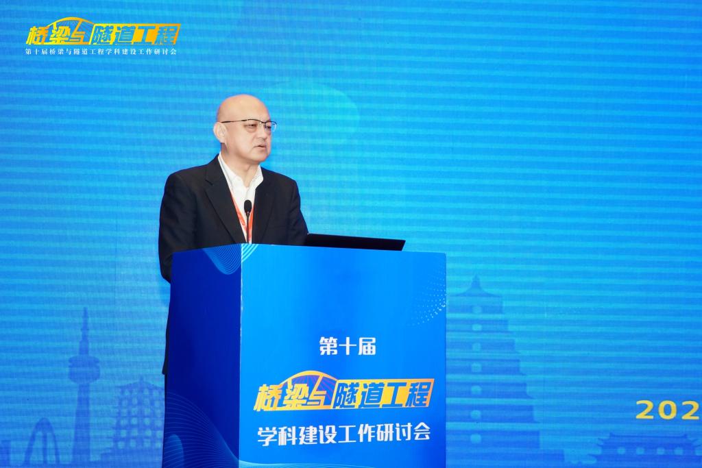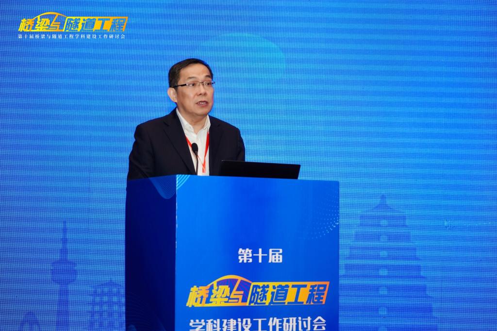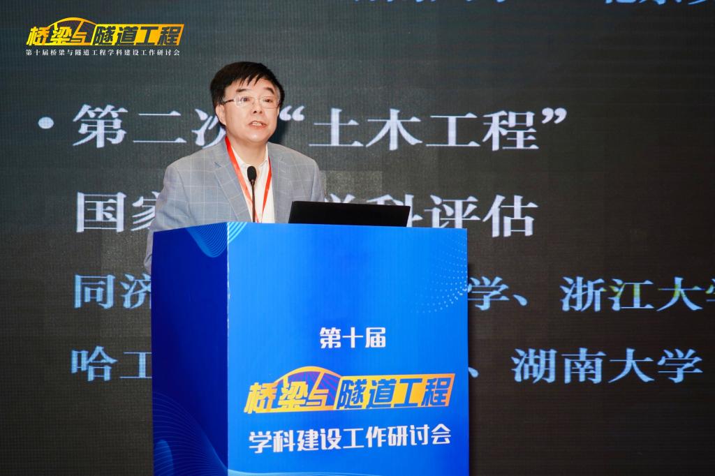 “桥梁与隧道工程”学科的发展历史、实力与特色。他指出,“桥梁与隧道工程”学科建设需要始终坚持中国特色、世界一流,在党的坚强领导下,坚持服务国家需求,瞄准科技前沿和关键领域,优化学科建设发展布局,把发展科技第一生产力、培养人才第一资源、增强创新第一动力更好结合起来,更好为改革开放和社会主义现代化建设服务。他希望各位与会专家、学者能够以本次研讨会的召开为契机,集思广益、群策群力、凝聚共识,共同提高“桥梁与隧道工程”学科的教学、研究与实践水平。