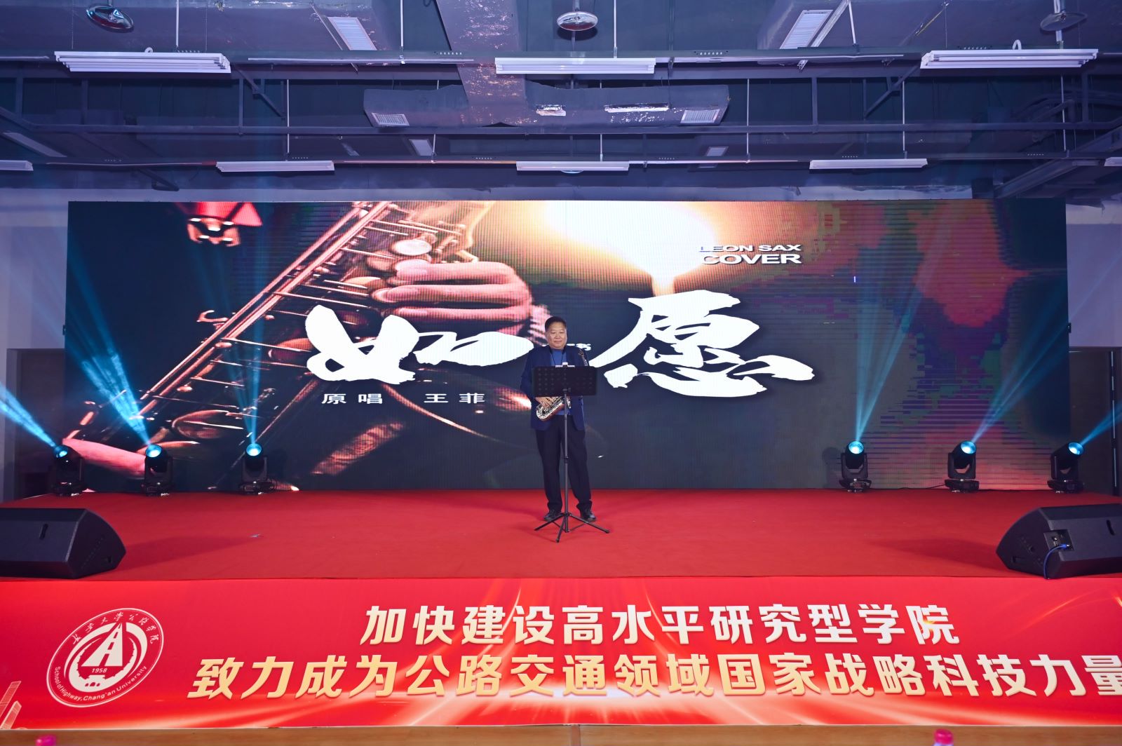 六十春秋筚路蓝缕艰苦创业的引路前辈们,并与全体教职工共勉。萨克斯乐声低沉悠扬,音色通透富有磁性,指尖翻转,娓娓流淌着美好的祝愿。