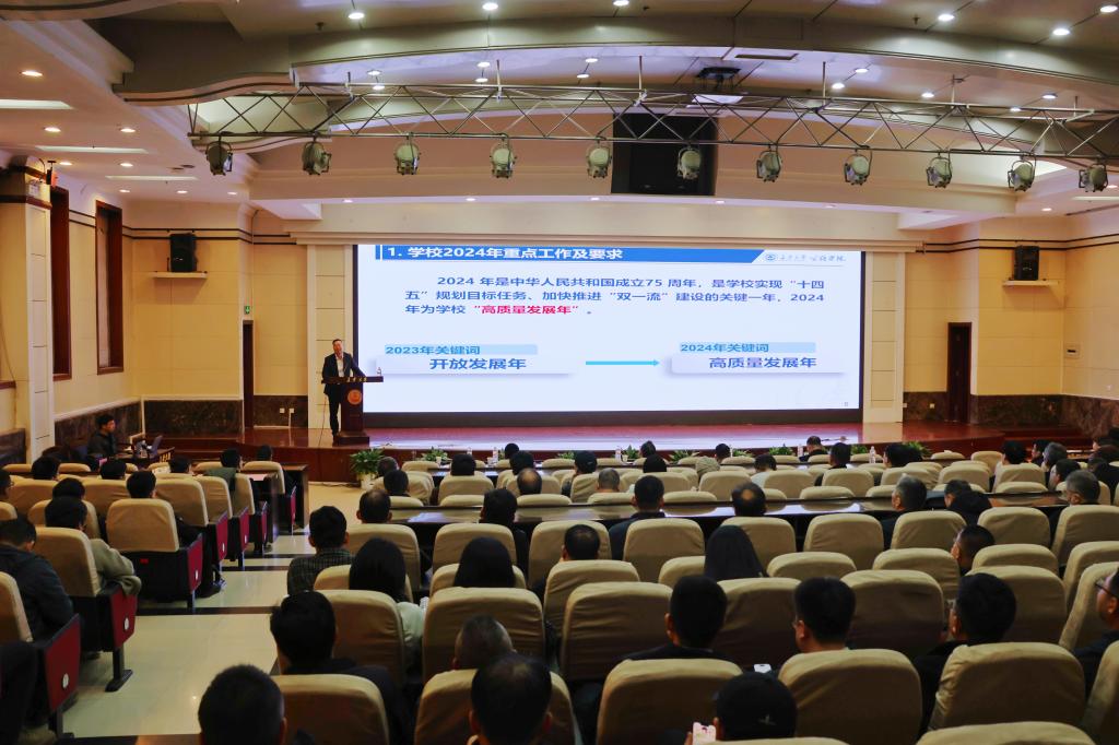 在南校区北院学术交流中心一层报告厅召开新学期全院教职工大会,研究部署本年度重点工作,学院全体教职工参加会议。本次会议由学院院长汪海年主持。