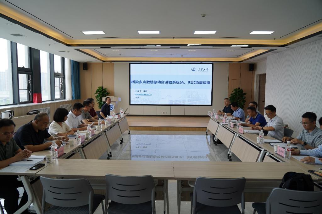 与供应商北京博科测试系统股份有限公司分别就设备建设情况、技术参数、调试过程等内容进行详细汇报。随后,专家组深入设备现场,对系统运行状态、性能指标进行实地考察,并围绕技术细节展开质询。经过严谨的讨论与论证,专家组一致认定:北京博科测试系统股份有限公司严格按照合同要求,高质量完成设备制造、安装、调试与验收试验,验收资料完整规范;设备现场运行稳定可靠,各项性能表现优异,“桥梁多点激励振动台试验系统” 满足合同规定的全部指标要求,顺利通过验收。