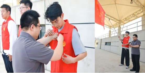 运动会工作中的中坚力量,在历届运动会中发挥了积极作用。动员大会上,学院领导为党员志愿服务队授旗,为党员志愿者代表佩戴党徽。党员志愿服务队表示,将在运动会中为同学们提供有力的帮助,服务备战参赛一线,发挥党员的模范先锋作用,做学院运动会最坚实的后盾。