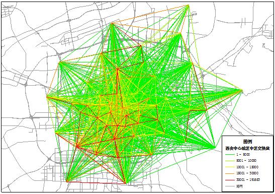 2015年西安市中心城区全方式出行分布图