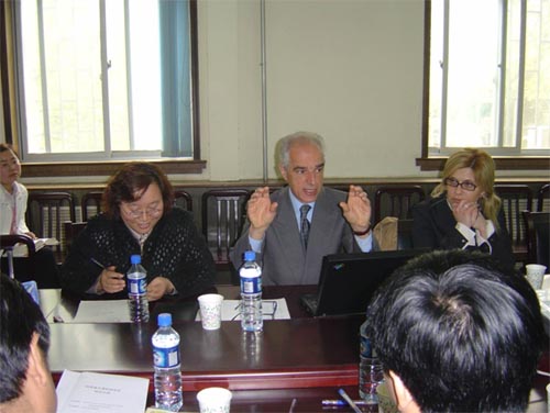 上午9时开始,学院交通工程系副主任王元庆博士首先向客人们介绍了西安市交通情况,随后Marino Mazzon先生向大家介绍了意大利在智能交通方面所开展的工作,开展Sina-Italian合作研究的有关情况,以及在北京开展工作的进展情况,省市有关部门领导就感兴趣的问题与意大利专家交流了看法。