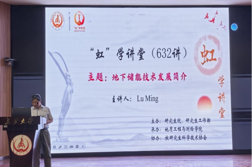 On the afternoon of April 21, the 632nd session of the "Hong" Academic Lecture Series was successfully held at the Bosheng Lecture Hall in the East Campus of the South Campus. The event was hosted by the Graduate School and the Graduate Student Affairs Office, organized by the College of Geological Engineering and Geomatics, and co-organized by the University Graduate Student Science and Technology Association. Academician Lu Ming from the Norwegian Academy of Technological Sciences delivered a report titled "Introduction to the Development of Underground Energy Storage Technology." The lecture was chaired by Professor Zhai Yue from the College of Geological Engineering and Geomatics, with over 170 faculty members and students from related colleges in attendance.