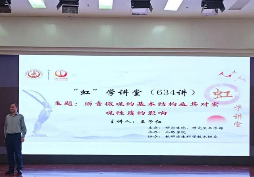 On the morning of April 24, the 634th session of the "Hong" Academic Lecture Series was successfully held at the Bosheng Lecture Hall in the East Campus of the South Campus. The event was hosted by the Graduate School and the Graduate Student Affairs Office, organized by the Highway School, and co-organized by the University Graduate Student Science and Technology Association. Professor Wang Yuhong from The Hong Kong Polytechnic University delivered a report titled "Basic Microstructure of Asphalt and Its Impact on Macroscopic Properties." The lecture was chaired by Associate Professor Wen Yong from the Highway School, with over 200 faculty members and students from related colleges in attendance.