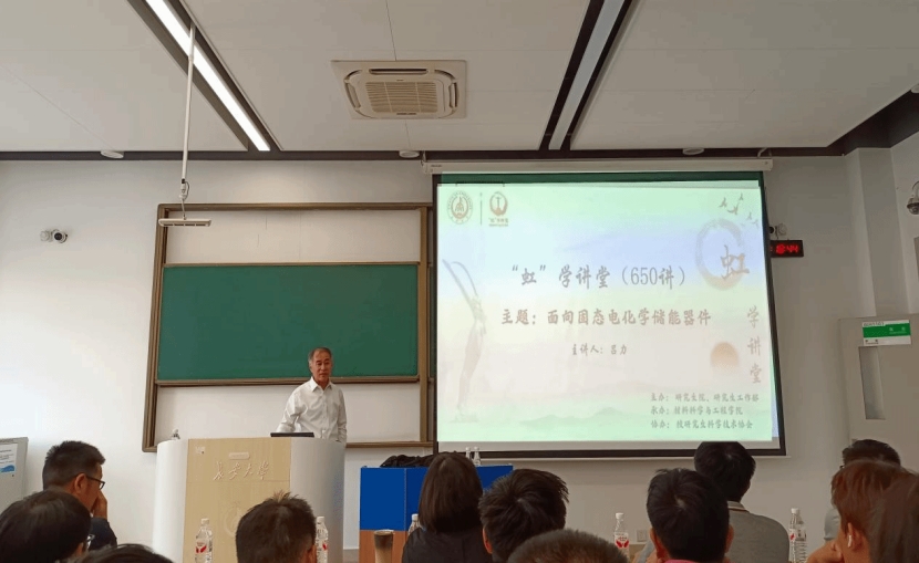 On the morning of September 12, the 650th session of the "Hong" Academic Lecture Series was held at WH1101 on the North Campus. The event was hosted by the Graduate School and the Graduate Student Affairs Office, organized by the School of Materials Science and Engineering, and co-organized by the University Graduate Student Science and Technology Association. Professor Lu Li from the National University of Singapore delivered a report titled "Towards Solid-State Electrochemical Energy Storage Devices." The lecture was chaired by Professor Guo Yajie from the School of Materials Science and Engineering, with over 150 faculty members and students from related colleges in attendance.