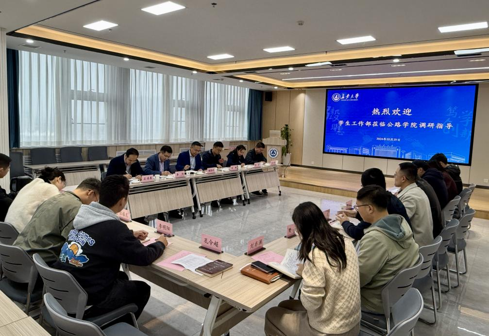 为深入贯彻落实党的二十届三中全会和全国教育大会精神,推进学校学生工作高质量发展,助力学校“双一流”建设,10月29日,学工部部长姬国斌,副部长刘鹏、李阳及有关科室(中心)负责人一行6人前往 色情游戏 调研学生工作。 色情游戏 党委书记张久鹏及全体本科生辅导员参加调研座谈,座谈会由 色情游戏 党委副书记贾历波主持。
