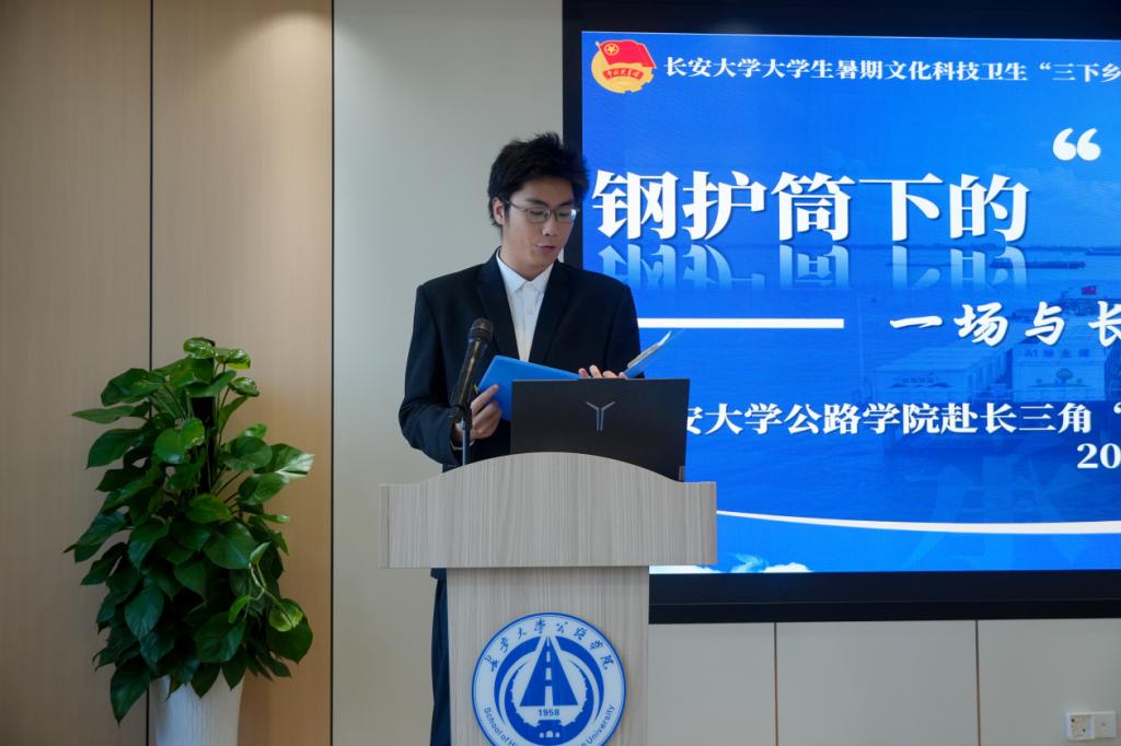 赴甘肃兰州“虹桥传薪·金城问道”暑期社会实践队肖梓文同学分享了他们通过无人机测量、方案比选等方式深入了解工程建设的经历。他认为,青年一代要走出课堂,走向祖国大地,将科技成果应用于实践,在一次次探索中不断磨砺自我,担当起建设交通强国的使命。
