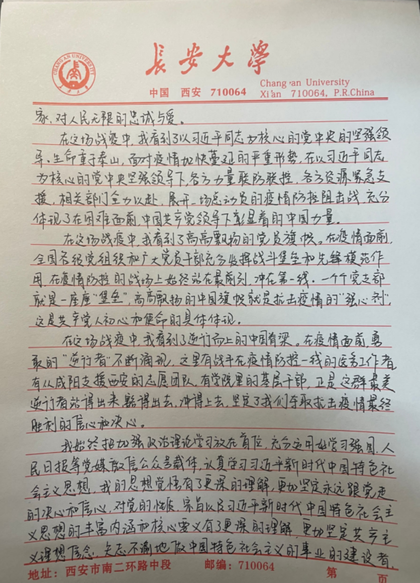 研究生党员、入党积极分子纷纷向党组织递交思想汇报,汇报自己近期的所思所想,这437份战“疫”时期的思想汇报,更是体现出公路学子在党的坚强领导下所凝聚出打赢疫情防控阻击战的强大合力。